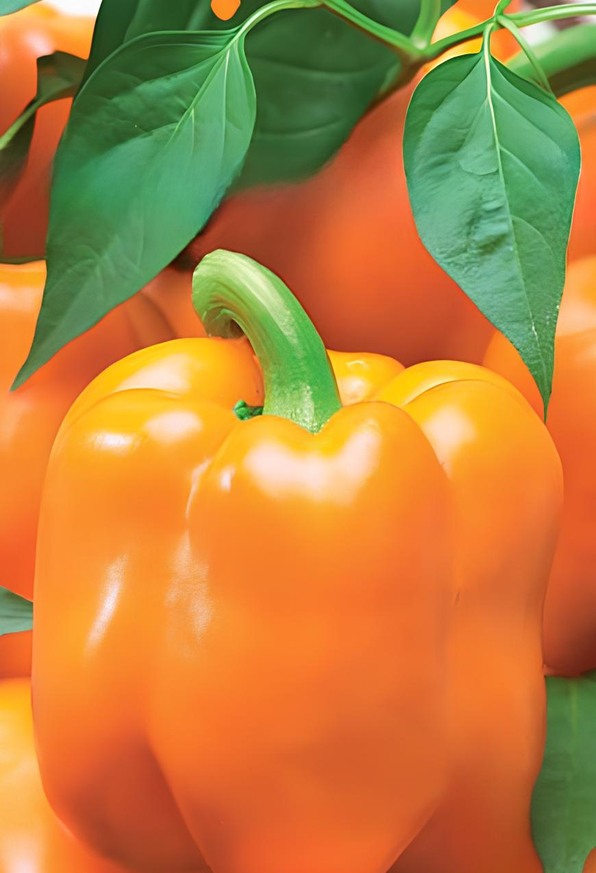Перец сладкий “Спритз” F1 имеет блочно-оранжевый плод с 3 – 4 долями, средней массой 220 – 230г, размер плода 7х9см.